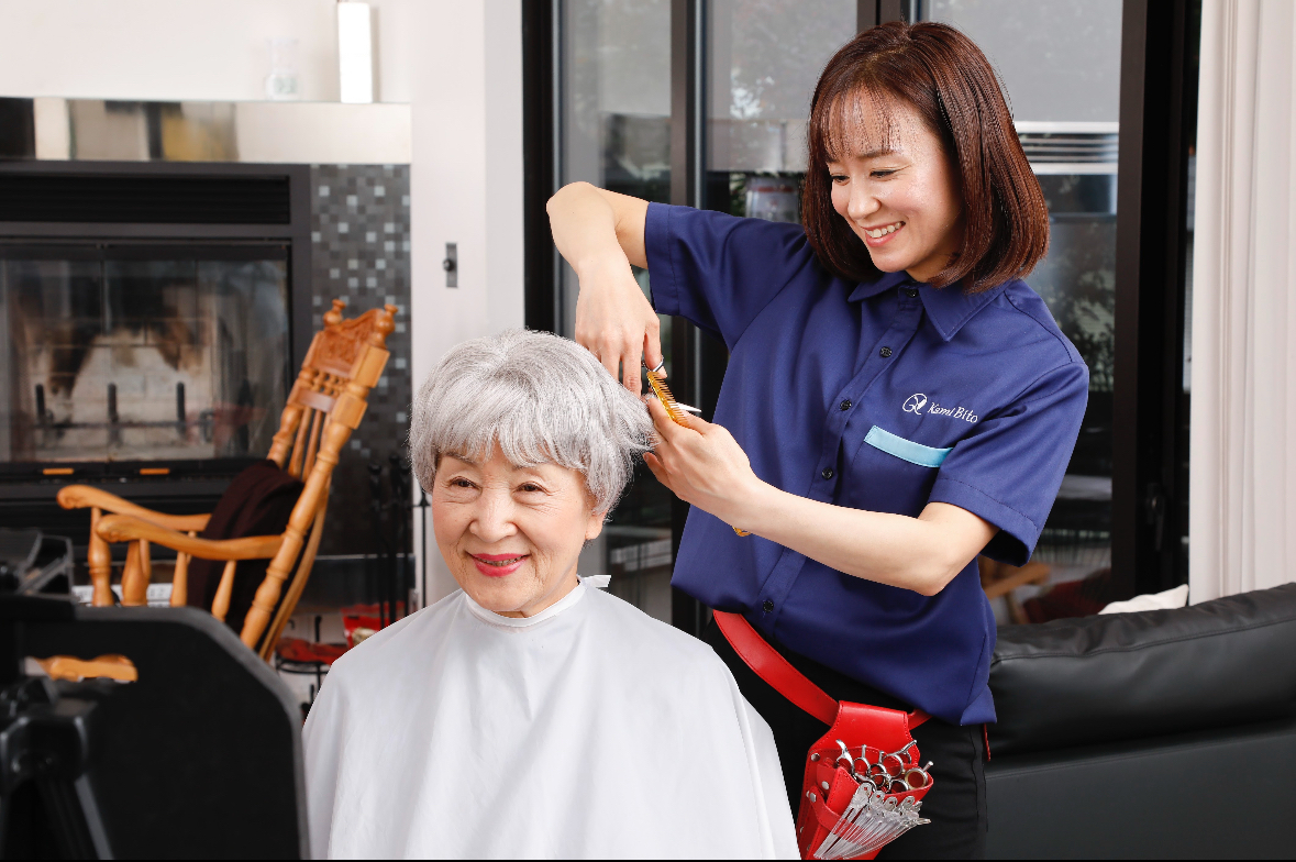 美容室に行きたいけれど怪我や病気・介護・育児の為サロンに行けない「綺麗な自分でいたい・若々しくいたい」と望むお客様の願いを叶える為に、和花では訪問美容の形で地域のお客様に貢献していきます。